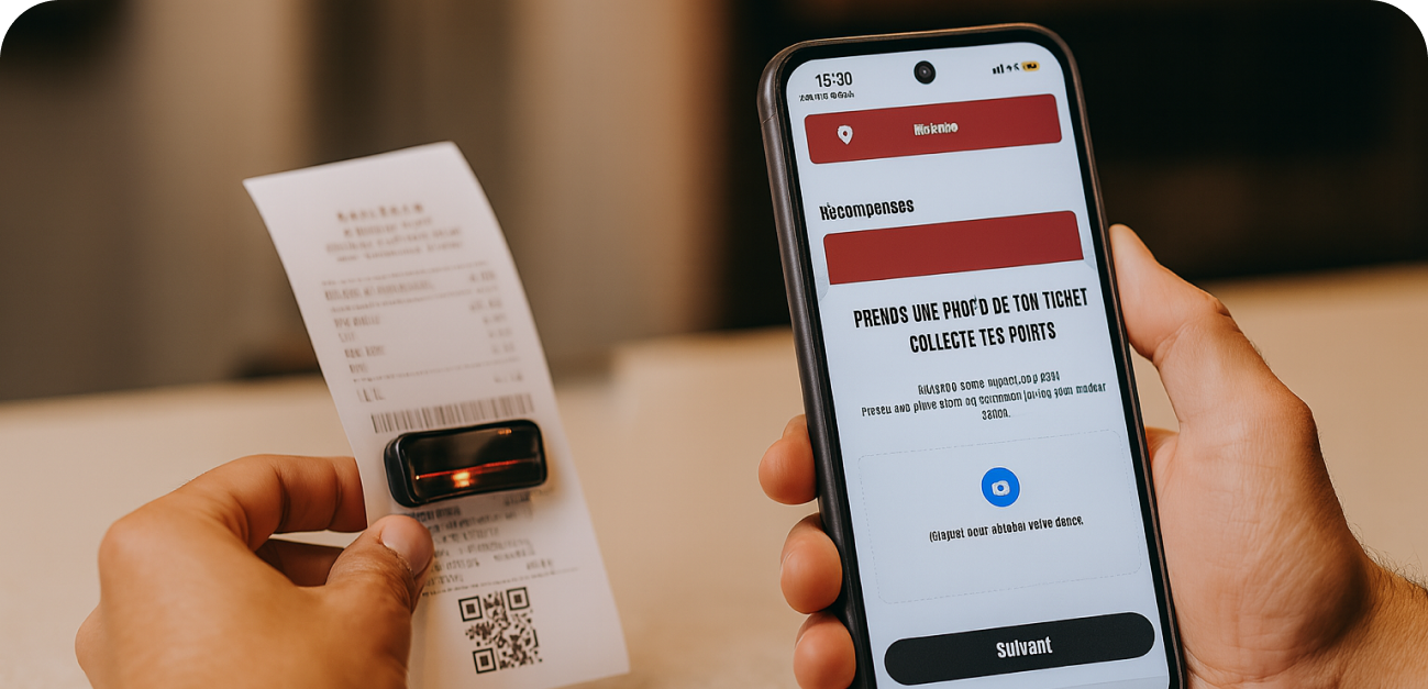 En boutique, votre client scanne son ticket et ses points se créditent automatiquement.