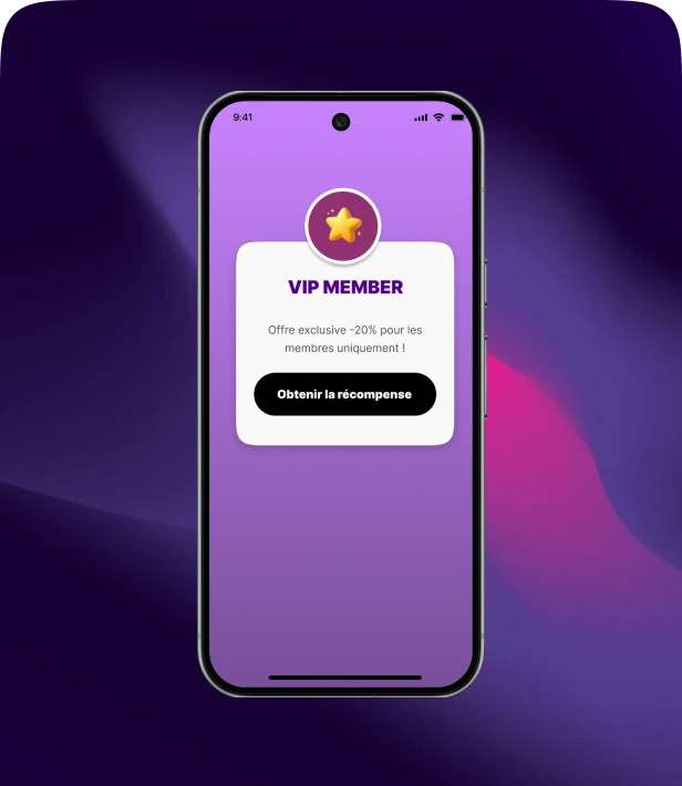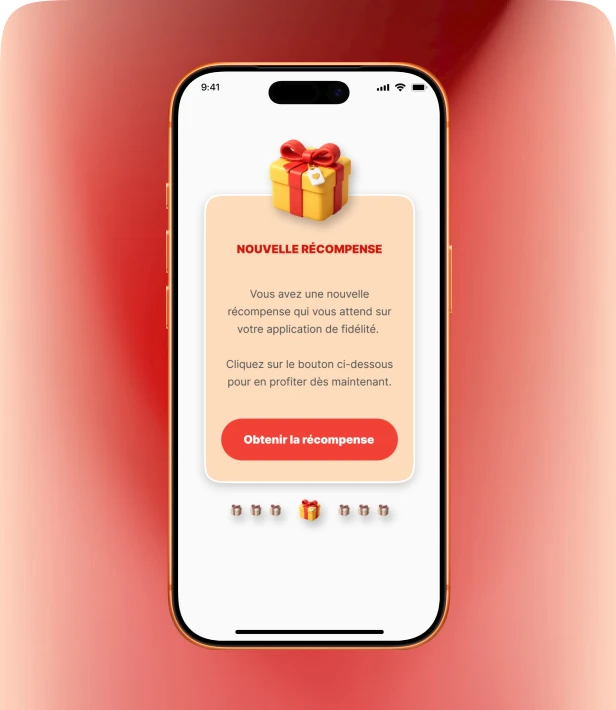 Push notifications display directly on your customers' lock screen, without requiring a native app. They go through Apple Wallet, Google Wallet and our Web App.